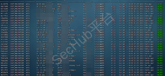 a954c643 FIT_REFLECTION 0/0 mtls 104.xxx.xxx.xxx:51690 root linux/amd64 en-US Thu Sep 21 03:03:32 PDT 2023 (15s ago) Thu Sep 21 03:04:55 PDT 2023 (in 1m8s)