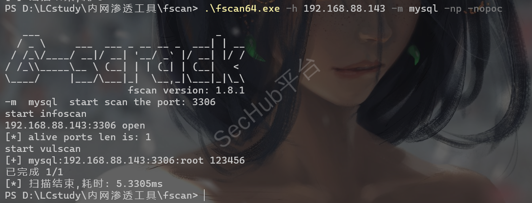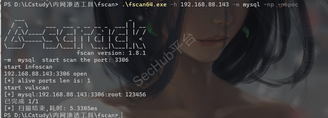 .\fscan64.exe -h 192.168.88.143 -m mysql -np -nopoc