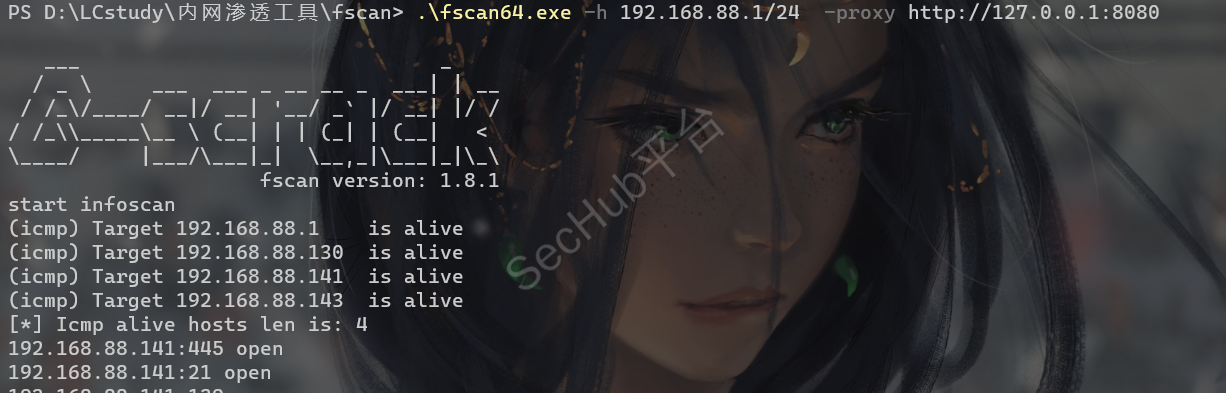 .\fscan64.exe -h 192.168.88.1/24 -proxy http://127.0.0.1:8080
