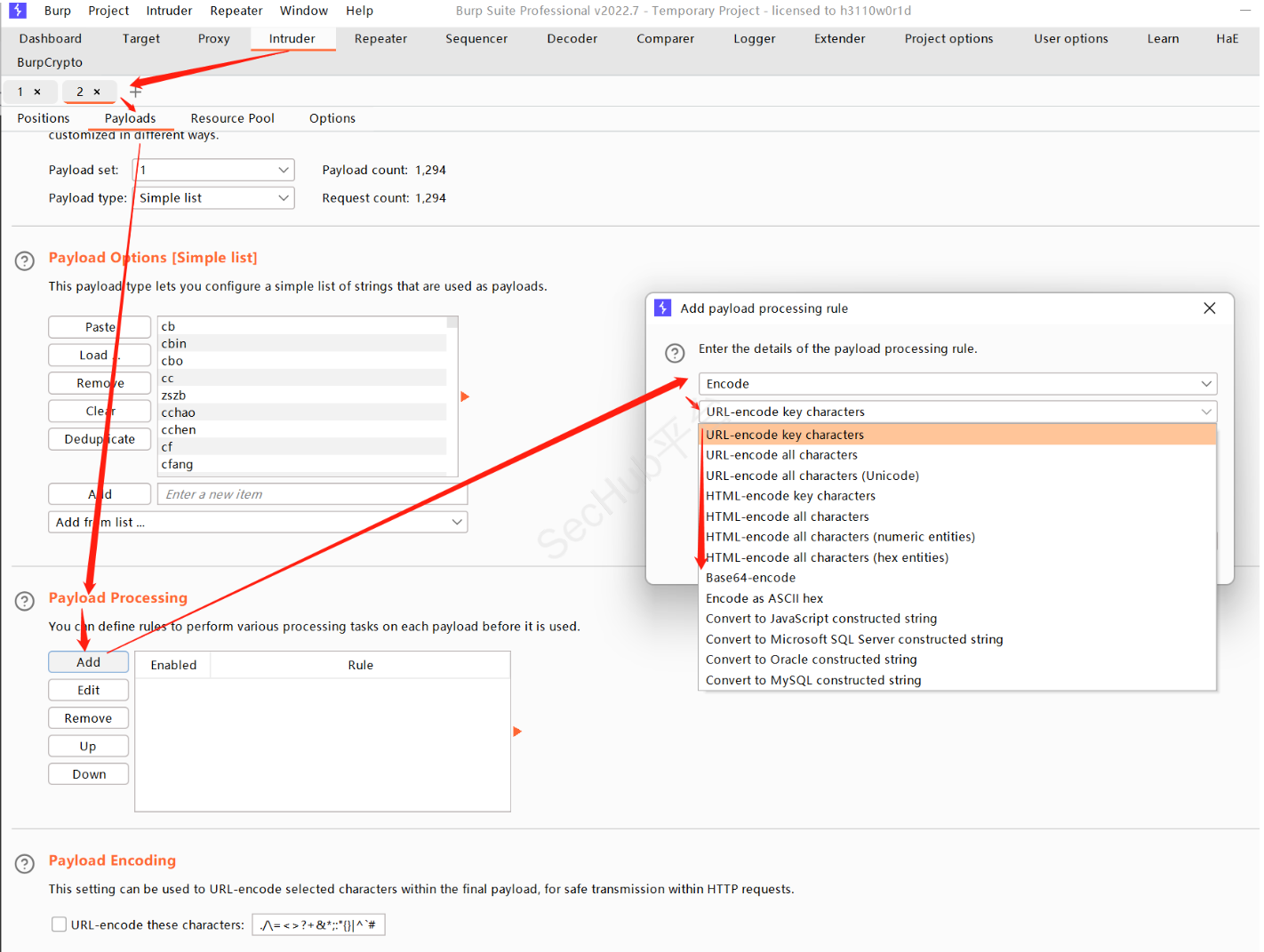 如果遇到一些简单加密,可以使用burp自带的功能,进行加密爆破,md5可以使用在线加密平台,批量加密,然后在使用burp进行爆破