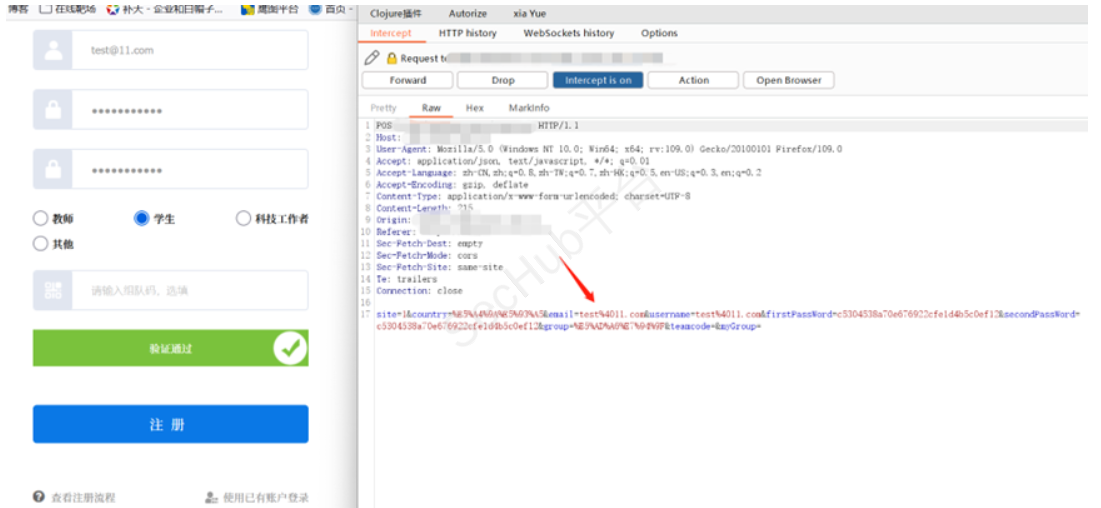 在下图中,站点只验证了email一个参数,所以对email参数进行爆破即可
