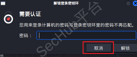 输入remmina使用,选择取消,咱们不需要设置二级密码