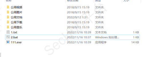 之后会在c:\users\public下生成bat脚本 和exe木马