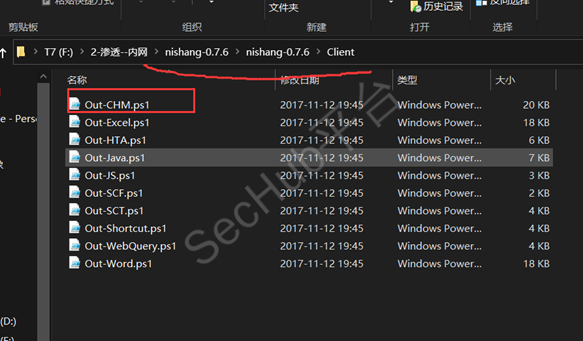 然后获取url之后,咱们用nishang直接生成一个chm