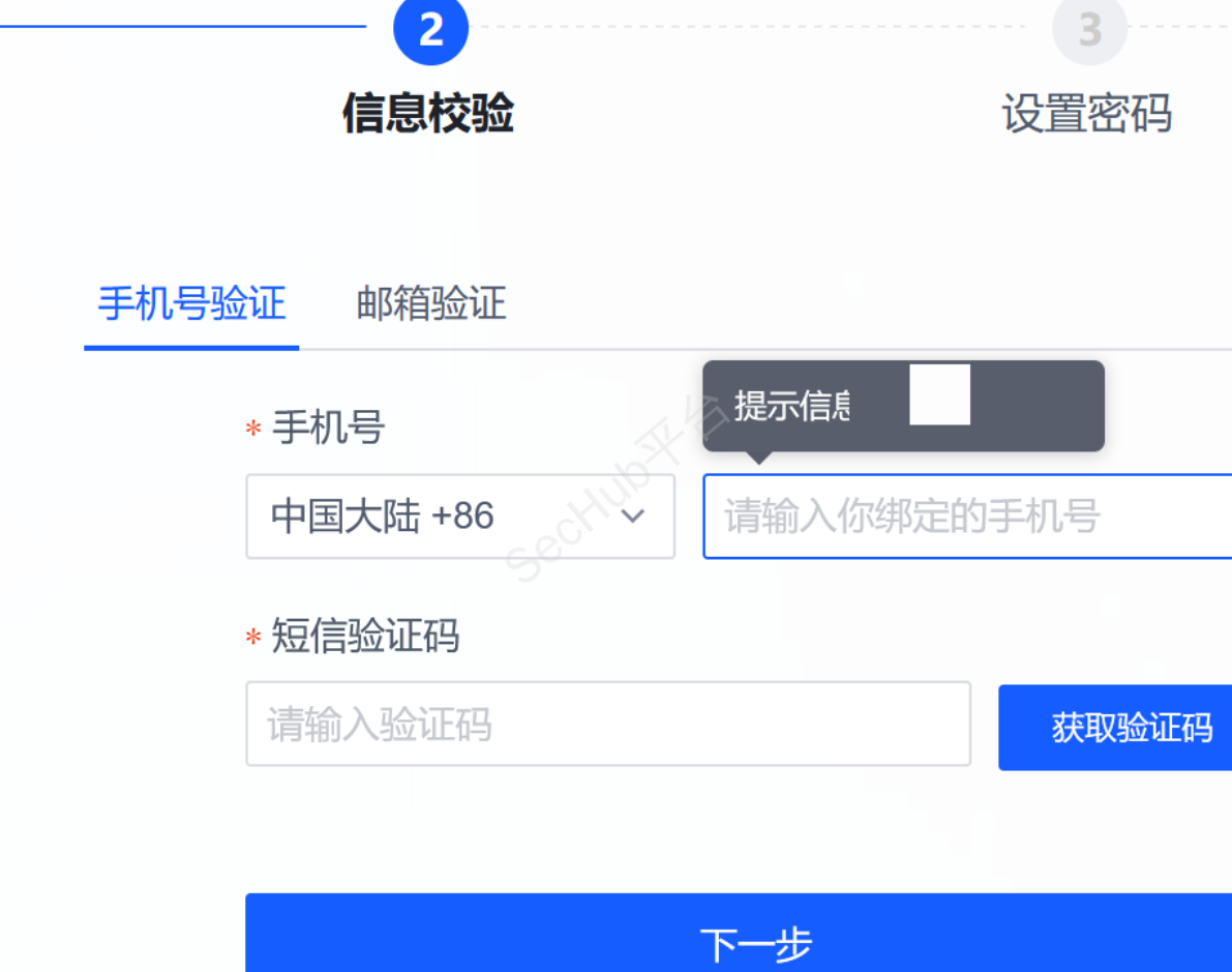 在尝试手机验证码无果后,尝试忘记密码,重置密码
