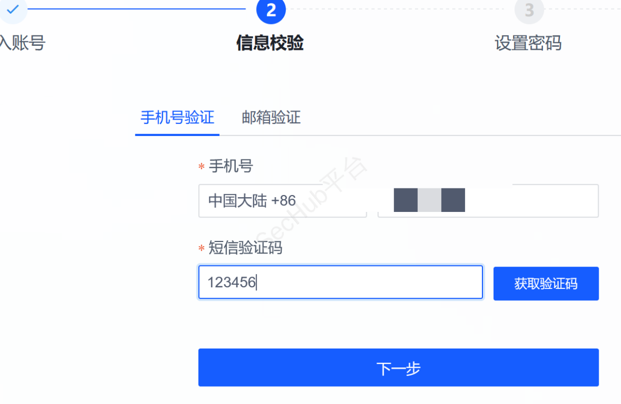 尝试输入对应手机号进行抓包改包