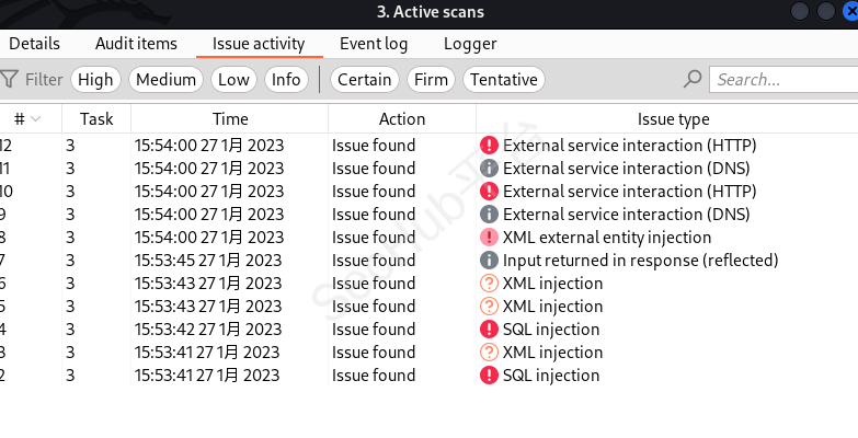 选择AddUser进行主动探测,Do active scan进行漏洞扫描