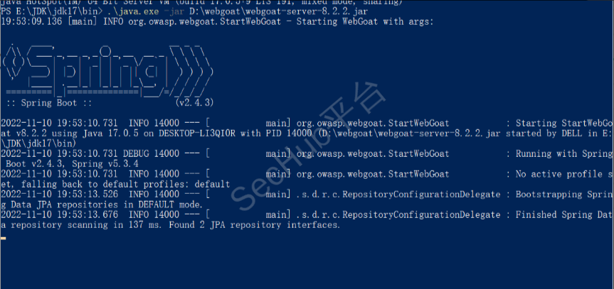 输入命令 java -jar webgoat-server-8.8.8.jar启动