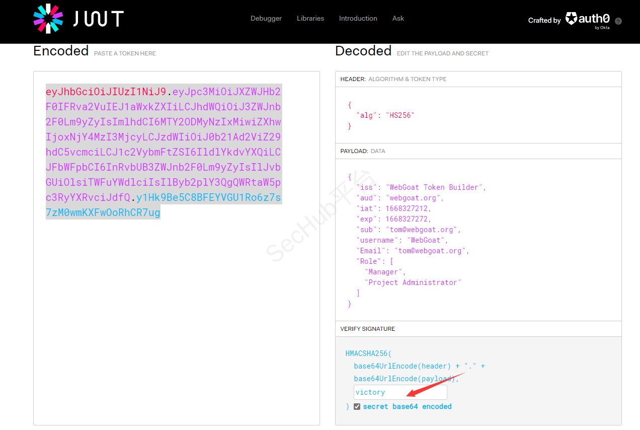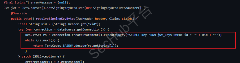 同时通过源码,可以看到密钥在用于检查 JWT 声明之前已进行 base64 解码,因此我们反推,在数据库中存储的是经过base64编码的。