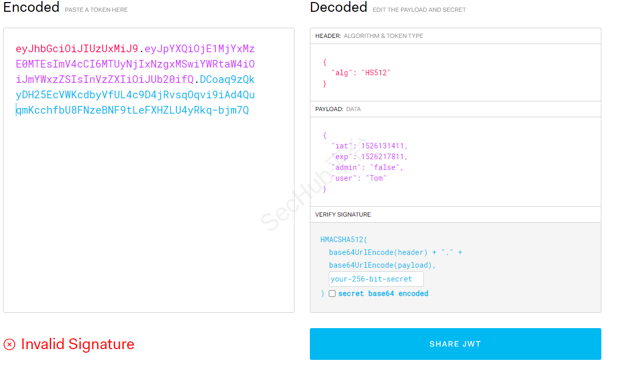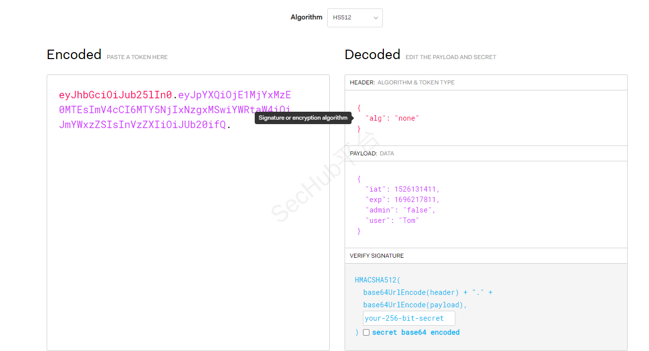 将签名算法HS512改为none