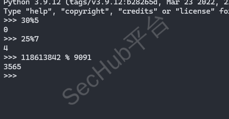 在密码学中,有一点数学上的东西经常出现。Modulo运算符几乎每种编程语言都实现了这个操作符,或者通过库提供它。当你需要处理大量的数字时,使用编程语言。Python很适合这一点,因为整数的大小是无限的,你可以很容易地得到一个解释器。